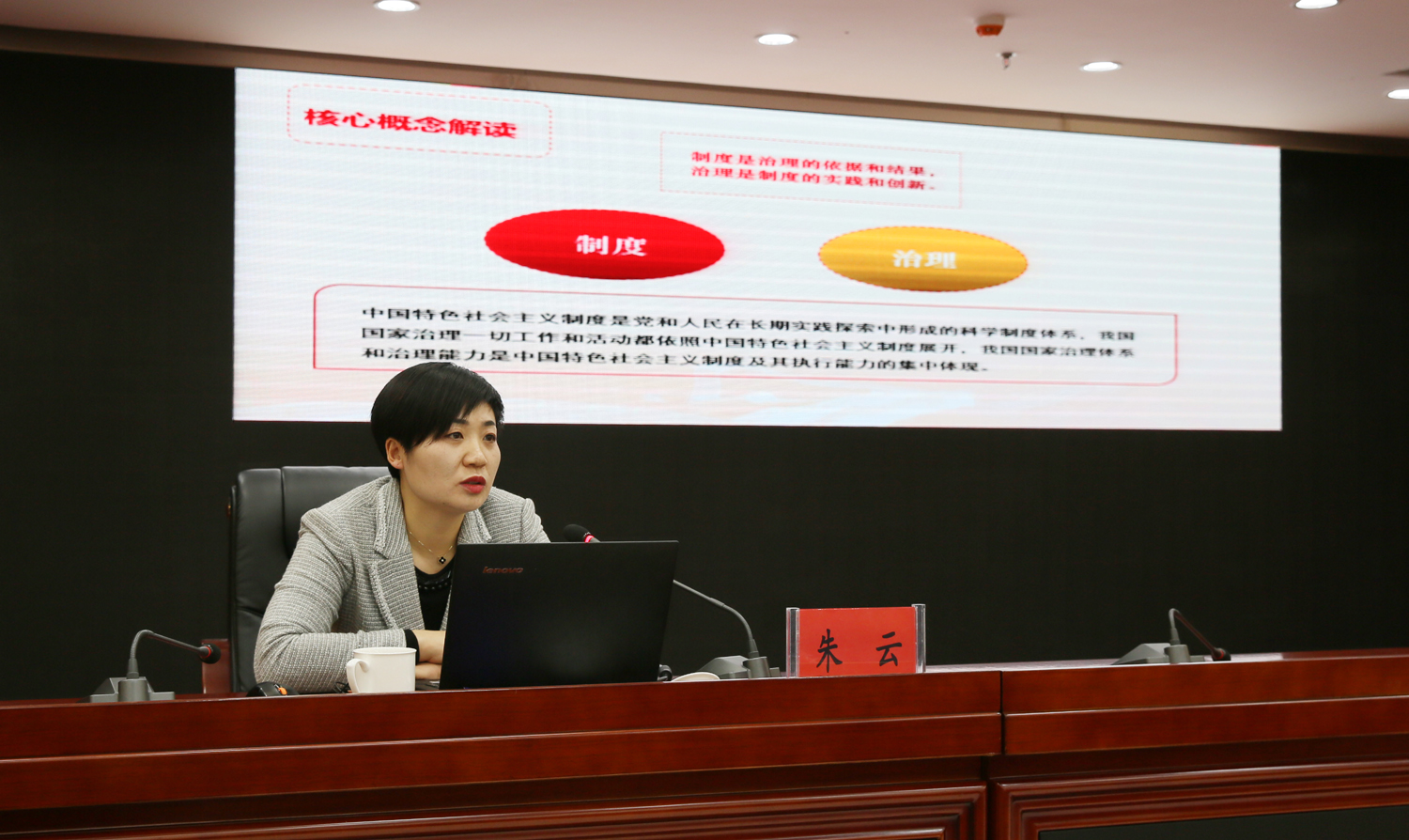 朱云以“開辟中國之治新境界”為題,緊緊圍繞黨的十九屆四中全會精神,系統(tǒng)闡述和深入解讀了堅(jiān)持和完善中國特色社會主義制度、推進(jìn)國家治理體系和治理能力現(xiàn)代化的重大意義、總體要求、總體目標(biāo)、重點(diǎn)任務(wù)。宣講報(bào)告聚焦重點(diǎn)和關(guān)鍵,將理論與實(shí)際、案例與數(shù)據(jù)相結(jié)合,內(nèi)涵豐富、論述精辟、通俗易懂,令與會人員深受啟迪,倍受教育。