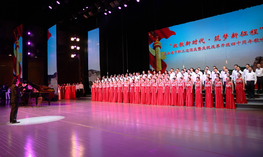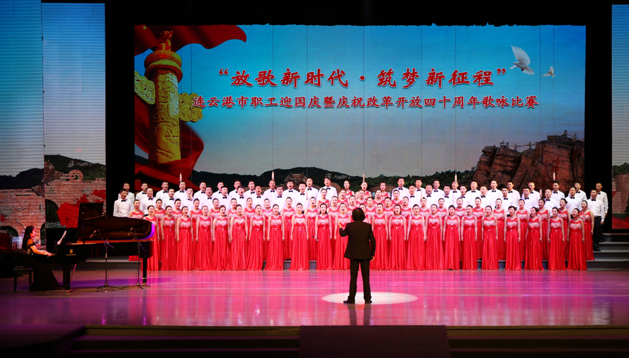 9月28日下午,由市委宣傳部、市總工會、市文廣新局聯合舉辦的“放歌新時代·筑夢新征程”——連云港市職工迎國慶暨慶祝改革開放四十周年歌詠比賽在市藝術中心隆重舉行。來自各縣區、各條戰線的16支代表隊參加比賽,經過3個多小時緊張角逐,集團公司組織的100人合唱隊以《走向復興》、《天路》兩首激昂向上的歌曲脫穎而出,獲得一等獎。