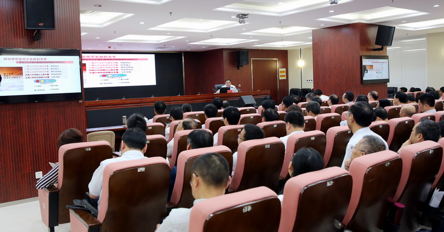 盧山教授在題為“解放思想,推動連云港市經濟社會高質發展”的專題講座中,圍繞“解放思想的科學內涵、重要意義,我市發展大格局和以解放思想引領經濟社會高質量發展”三個方面,對思想大解放推動全市高質發展、后發先至進行了全面、系統、深入的闡述和解讀,條理清晰、數據翔實、內容豐富,為集團公司做深做實做好解放思想大討論活動奠定了堅實基礎。