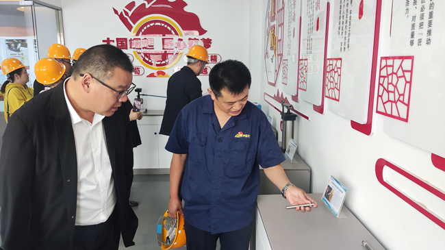 邵巍一行先后參觀了氨綸公司展廳、黨員活動(dòng)室、勞模工作室、八期三組聯(lián)建活動(dòng)室和工作看板,翻閱了“三組聯(lián)建”活動(dòng)臺賬,詳細(xì)了解了氨綸公司“三組聯(lián)建”活動(dòng)開展情況。