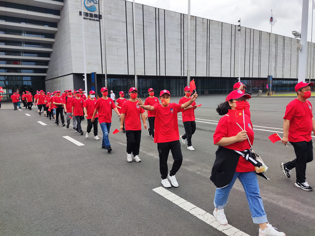 “健步行”活動在連云港工業展覽中心廣場舉辦,活動現場彩旗隨風招展,人員排列有序,個人防疫完善,人員精神飽滿。行走中,參走人員體驗了“我健步、我快樂、我健康”的運動樂趣。