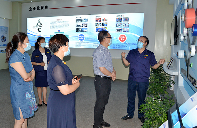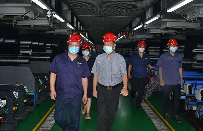 張仲文一行先后參觀了公司產(chǎn)品展廳、八期生產(chǎn)線、研發(fā)中心,公司總經(jīng)理張斌對我公司的發(fā)展歷程,差別化產(chǎn)品、戰(zhàn)略優(yōu)勢等進(jìn)行了詳細(xì)介紹,張仲文對我公司低溫?zé)嵴澈习本]、抗菌氨綸、驅(qū)蚊氨綸及氨綸生產(chǎn)全流程自動(dòng)化、智能化生產(chǎn)線等給予了高度評價(jià)。