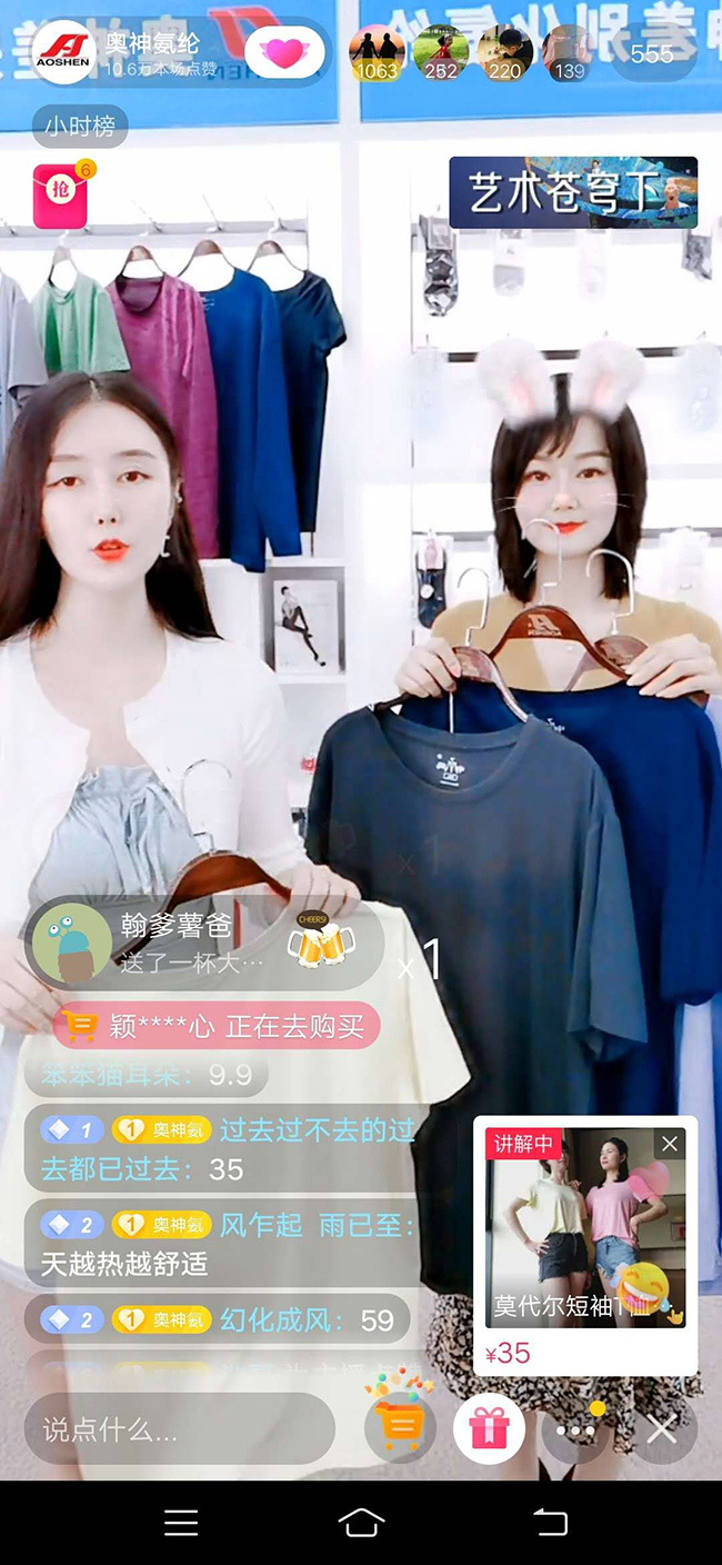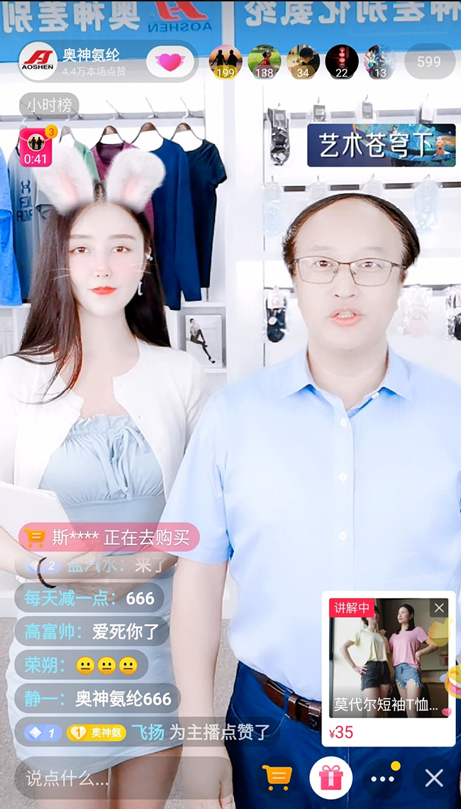 活動中,公司總經(jīng)理張斌為直播活動開幕致辭。張斌總經(jīng)理表示,連云港杜鐘新奧神氨綸有限公司作為國有企業(yè),將積極借助網(wǎng)絡(luò)直播平臺,探索電商線上發(fā)展新模式,把奧神氨綸的商品更好地推向市場。活動中,我們邀請知名主播為線上的觀眾們帶來了具有專利抗菌作用的內(nèi)褲、連褲襪、家居服、莫代爾T恤等產(chǎn)品。通過開啟“云逛街”模式,帶領(lǐng)大家在抖音淘寶平臺感受奧神氨綸的產(chǎn)品和企業(yè)文化。