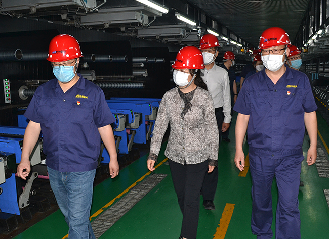 秦云副主席一行先后參觀了公司展廳、黨員活動室、八期生產(chǎn)線、自動化包裝線以及自動化立體庫。參觀過程中,趙書記詳細介紹了公司發(fā)展歷程、差別化產(chǎn)品性能特點以及公司今年以來在應(yīng)對疫情中工會開展的各項工作等。秦云副主席對我公司工會圍繞中心工作一手抓防疫一手抓生產(chǎn)發(fā)揮的突出作用表示肯定。對公司開展的三鷹計劃實施、和諧班組建設(shè)、員工權(quán)益保障、三進三融助生產(chǎn)等方面的工作稱贊有加。