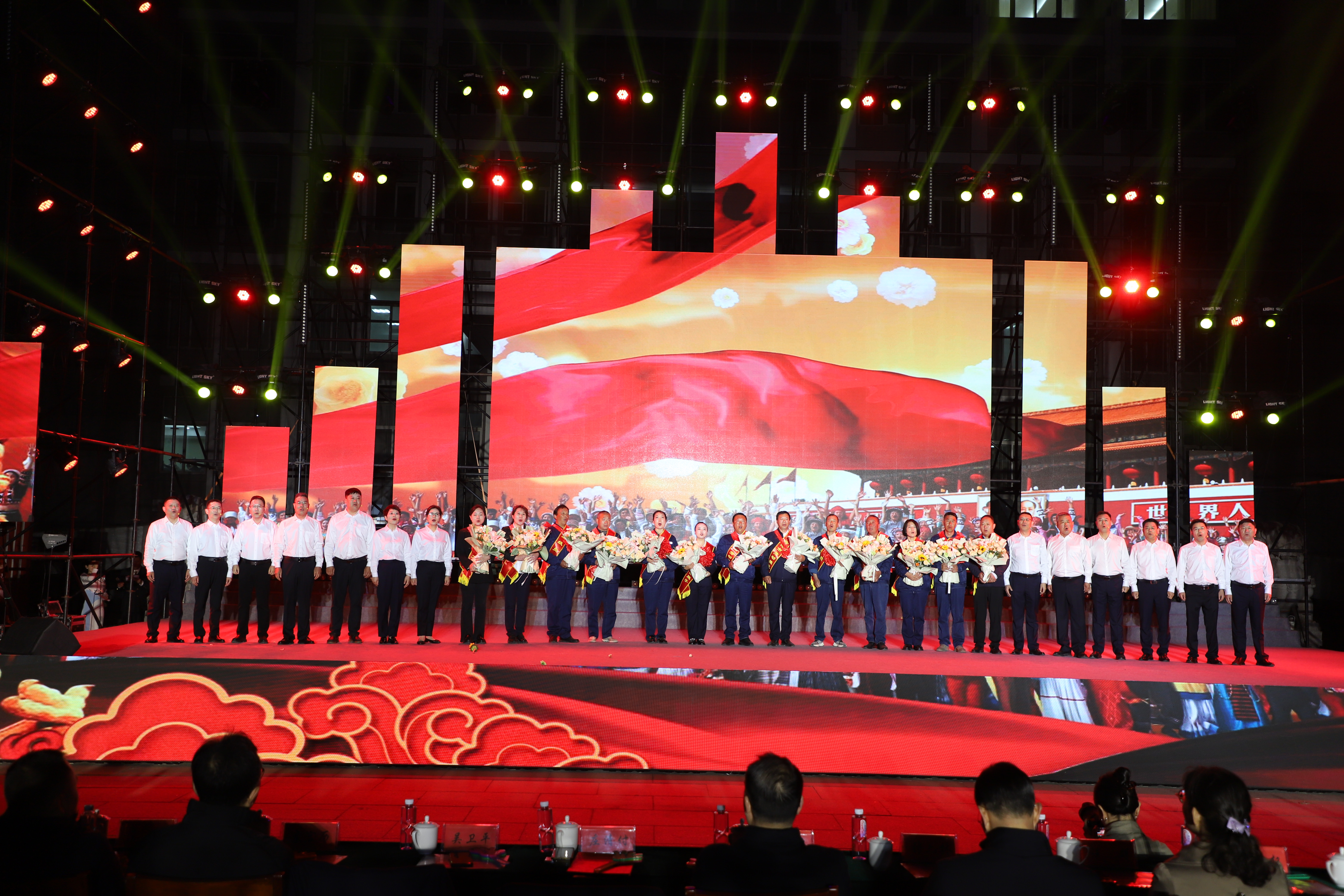 本次文藝匯演有歌舞、三句半、音樂快板、朗誦、相聲、歌曲串燒、歌曲獨唱、大合唱等豐富多彩的節目,其表演形式和精彩內容引人入勝,火熱絢麗的舞臺、貼近職工生活的節目內容、公司熱火朝天的奮斗場景,呈現了灌西人對企業的深沉情感和對工作生活的激情與熱愛。演出在開場群舞《盛世歡歌》拉開帷幕,整個演出分為“禮贊·勞動最光榮”“鑄魂·勞動最崇高”“閃耀·勞動最美麗”“輝煌·勞動最偉大”四個篇章,三句半《凝心聚力譜新篇》、舞蹈《沸騰的鹽灘》、音樂快板《后發先至看工投》等都是灌西職工自編自演的節目,充分展現了灌西員工朝氣蓬勃、奮發向上的精神面貌,以及對公司創新發展、職工幸福安康的美好祝愿。灌西公司黨委書記、董事長孫政權和金航公司黨總支書記、總經理莊清付分別登臺獻藝,為大家表演了歌曲獨唱《我是一條小河》和配樂詩朗誦《我驕傲,我是中國人》,得到職工觀眾們熱烈的掌聲。小合唱《咱們工人有力量》、大合唱《新時代新家園》《沒有共產黨就沒有新中國》等節目把現場的氣氛推向了高潮,有力展現了全公司職工們激情澎湃、昂揚奮進的精神面貌。在文藝演出中間,還分別對公司各條戰線的勞模先進代表、先進單位、部門和班組進行了表彰。(西宣)