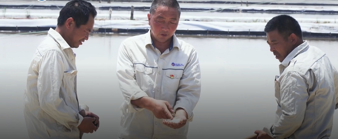 烈日之下,汗水也閃爍著光芒。在日曬制鹽埒南分公司十一班,筆者看到工人們正在火毒毒的烈日下修補(bǔ)塑布,盡管已經(jīng)錯(cuò)開相對(duì)高溫時(shí)間上班,但仍避免不了頭頂太陽烤、腳下鹵水蒸,個(gè)個(gè)都像剛從水里出來一樣,渾身上下沒有一點(diǎn)干的地方。“天氣這么熱吃得消嗎?”筆者問班長(zhǎng)章保衛(wèi)。“習(xí)慣了,不礙事。”他扯起衣襟抹了一把臉上淌下來的汗水滿不在乎地說:“眼下正值雨季,戰(zhàn)高溫、搶睛天,防雨抗災(zāi)頭等大事,不這樣苦干不行啊。”“全年產(chǎn)鹽任務(wù)能完成?”“只要不遭受大的自然災(zāi)害,完成年計(jì)劃沒問題!”他回答得干脆,也很自信。