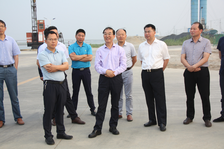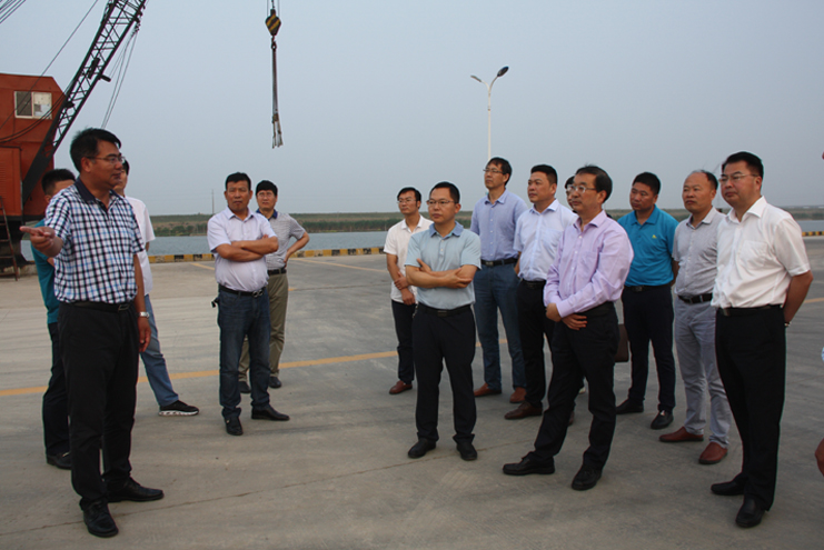 在宵洋物流公司的五灌河碼頭處,集團公司總經理胡建明對五灌河碼頭的建設和運營情況對考察團進行了介紹,他指出,五灌河碼頭是公司利用擁有的內河岸線資源開發起來,主要進行原鹽駁運和建材、化工噸袋等物資的裝卸,碼頭吞吐量年年增長,目前年吞吐量已達到100萬余噸,二期碼頭擴建項目即將進行,集團公司除了五灌河碼頭,還有一處燒香河內河碼頭,也許暫時看不到顯著效益,但隨著江蘇沿海經濟開發的不斷推進,碼頭的資源優勢愈加凸顯,將來一定會成為稀缺資源。