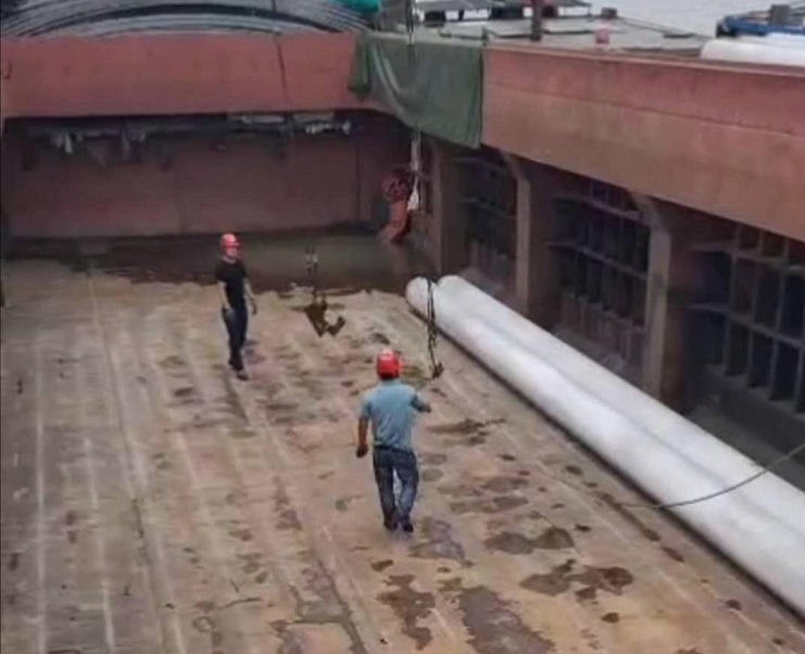 “要先將掛鉤小心地分開,然后將掛鉤分別掛在管樁的兩頭,將它吊起的時候,要注意安全……”,碼頭掛鉤工人一邊演示一邊說。宵洋公司全體管理人員在一旁聽得很仔細(xì),注視著每一個細(xì)節(jié)。該公司經(jīng)理靳國祥還下到船艙親自體會。從最初的手法笨拙到逐漸熟練,沒一會兒功夫就與老手不相上下了。