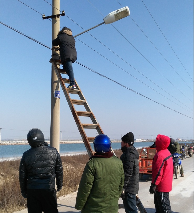 為增添節(jié)日氣氛,亮化場區(qū),機械設(shè)備服務(wù)中心接到場區(qū)及日曬鹽道路路燈維修任務(wù)后,班子成員高度重視,認(rèn)真組織,積極籌備維修配件,并結(jié)合天氣形勢,對需要修理的60盞路燈,采取分段實施的辦法,于1月25日開始,他們本著安全第一的原則,搶時間爭速度,對日曬鹽道路路燈展開維修工作,繼而對場區(qū)中二圩街道路燈進行維修,職工們不畏嚴(yán)寒,加班加點,到1月31日將全部路燈維修結(jié)束。(圖為修理現(xiàn)場)