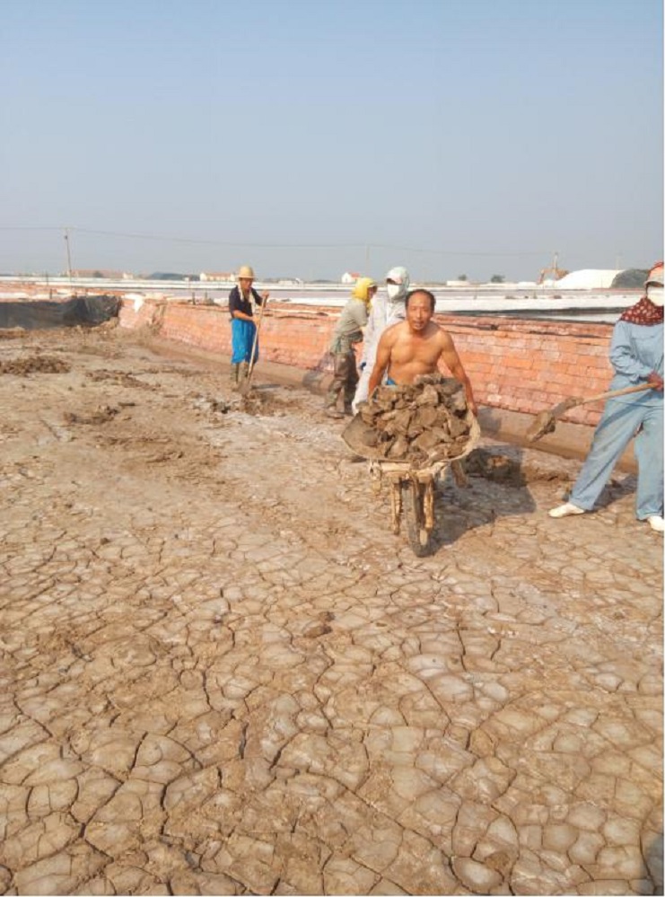 連續的高溫讓人熱得喘不過氣來,正當人們躲在空調下享受清涼的時候,日曬制鹽埒南制鹽分公司的廣大干群仍堅持奮戰在生產一線,搶抓有利天時組織生產。活碴、除硫、整理池板、做天溝各項工作穩步有序推進。汗水浸濕了他們忙碌的身影子影。