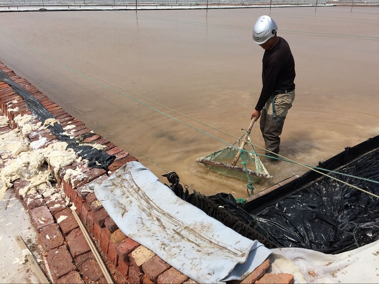 近日,飄揚的柳絮給人們的生活和工作帶來了諸多煩惱,給日曬制鹽池鹽生產(chǎn)帶來了質量隱患,新河制鹽組織各班抽調主干力量打撈落入灘池中的柳絮,保證柳絮不長入池鹽從而影響鹽質。(新河制鹽 邱利民)