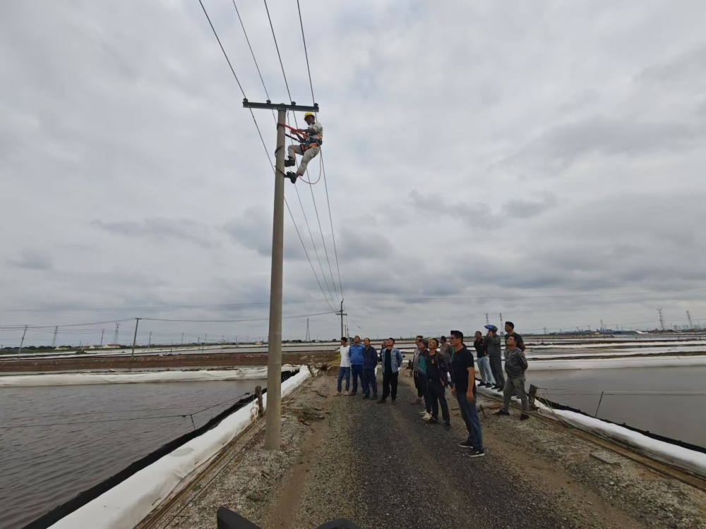 會后,與會人員前往新河制鹽分公司八班二期觀看學習變壓器停送電操作要領、安全繩穿戴及蹬桿接電現場示范,由經驗豐富的員工孫超、邱志國進行變壓器停送電的操作、穿戴安全繩和使用安全扣演示,并進行蹬桿接電操作,每一個動作都精準到位,同時詳細講解操作要點和注意事項。讓員工們深刻認識到遵守操作規程和正確使用安全防護裝備的重要性。