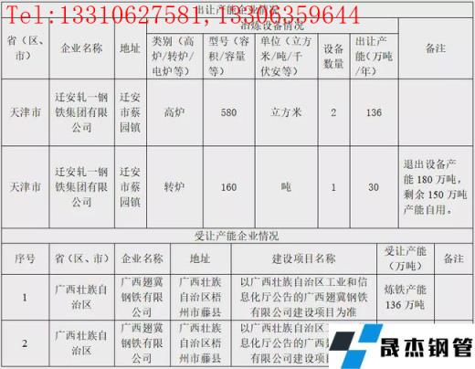 12月31日,天津市工信局發布遷安軋一鋼鐵集團有限公司產能出讓公告。遷安軋一鋼鐵集團有限公司出讓580m3高爐2座和160t轉爐1座設備給廣西翅冀鋼鐵,共計出讓煉鐵產能136萬噸,煉鋼產能30萬噸。