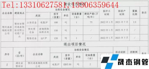 鄂州鴻泰鋼鐵75萬噸/年電爐煉鋼建設項目產能置換方案公告