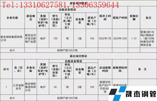 新余鋼鐵電弧爐節能環保改造項目產能置換方案公告