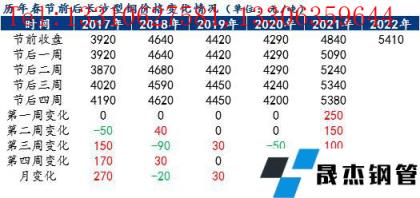 首先從近幾年春節前后長沙型鋼價格變化情況來看,除了2021年,其余幾年節后第一周基本以穩為主,主要是因為需求未開始啟動,市場平盤運行。元宵之后,需求逐漸得到釋放,除了2020年因公共衛生事件影響,釋放進度有所滯后,節后開盤價格出現回落,其余幾年以震蕩趨強運行為主,不管是無縫鋼管廠還是貿易商,為獲利消化冬儲庫存,均對節后開門紅存在一定期待。而2022年節前收盤價格偏高,貿易商情緒較為謹慎,正常備庫,主動冬儲意愿不強,節后市場庫存壓力相對可控,對開盤價格存在一定支撐。