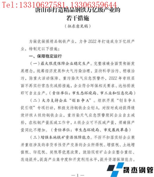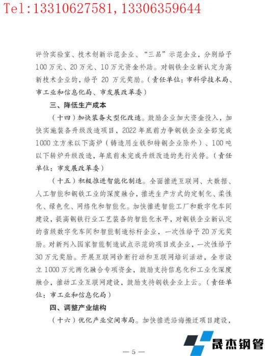 免責(zé)聲明:本網(wǎng)站(山東聊城晟杰無(wú)縫鋼管廠www.subnucleon.com)刊載的“鼓勵(lì)重組、加快搬遷、未改關(guān)停唐山市打造精品鋼鐵萬(wàn)億級(jí)產(chǎn)業(yè)!”等均源于網(wǎng)絡(luò),版權(quán)歸原作者所有,且僅代表原作者觀點(diǎn),本文所載信息僅供參考。轉(zhuǎn)載僅為學(xué)習(xí)與交流之目的,如無(wú)意中侵犯您的合法權(quán)益,請(qǐng)及時(shí)聯(lián)系刪除。本網(wǎng)站刊登此篇文章并不意味著本站贊同其觀點(diǎn)或證實(shí)其內(nèi)容的真實(shí)性,我們不對(duì)其科學(xué)性、嚴(yán)肅性等作任何形式的保證。如果侵犯了您的版權(quán),請(qǐng)盡快聯(lián)系我們予以撤銷,謝謝合作!