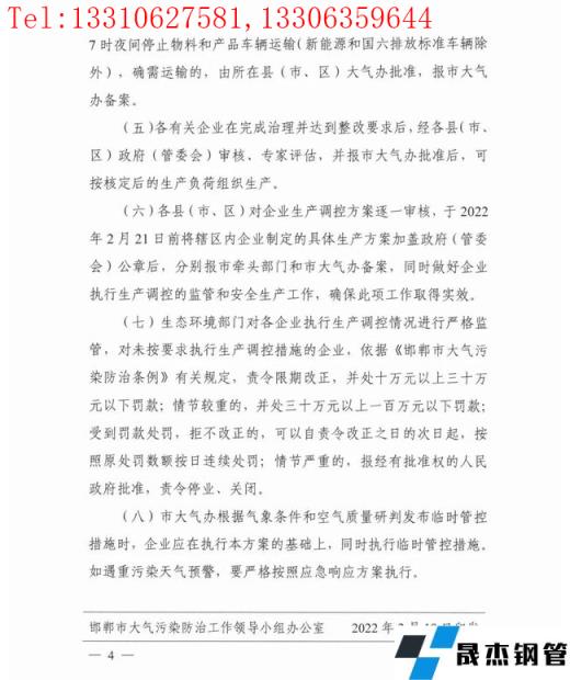 免責(zé)聲明:本網(wǎng)站(山東聊城晟杰無縫鋼管廠www.subnucleon.com)刊載的“限產(chǎn)50%!河北一地再發(fā)鋼企限產(chǎn)令!即日起至月底!”等均源于網(wǎng)絡(luò),版權(quán)歸原作者所有,且僅代表原作者觀點(diǎn),本文所載信息僅供參考。轉(zhuǎn)載僅為學(xué)習(xí)與交流之目的,如無意中侵犯您的合法權(quán)益,請及時(shí)聯(lián)系刪除。本網(wǎng)站刊登此篇文章并不意味著本站贊同其觀點(diǎn)或證實(shí)其內(nèi)容的真實(shí)性,我們不對其科學(xué)性、嚴(yán)肅性等作任何形式的保證。如果侵犯了您的版權(quán),請盡快聯(lián)系我們予以撤銷,謝謝合作!