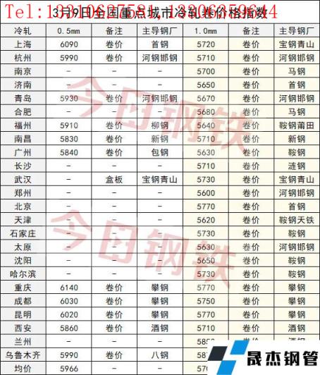 截至3月9日,全國主要城市0.5mm冷軋板卷均價5966元/噸,周環(huán)比上漲59元/噸;1.0mm冷軋板卷均價5708元/噸,周環(huán)比上漲65元/噸。以下為3月4日與3月9日全國重點(diǎn)城市冷軋板卷價格指數(shù)對比情況: