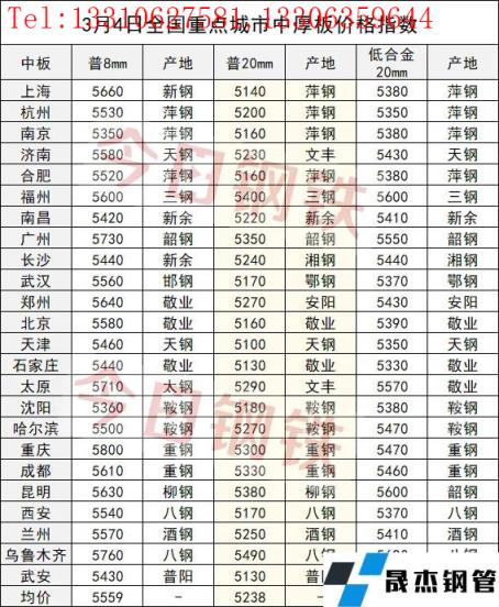 截至3月9日,全國主要城市普8mm中厚板均價5609元/噸,周環(huán)比上漲50元/噸;普20mm中厚板均價5290元/噸,周環(huán)比上漲52元/噸;低合金20mm均價5492元/噸,周環(huán)比上漲53元/噸。以下為3月4日與3月9日全國重點(diǎn)城市中厚板價格指數(shù)對比情況: