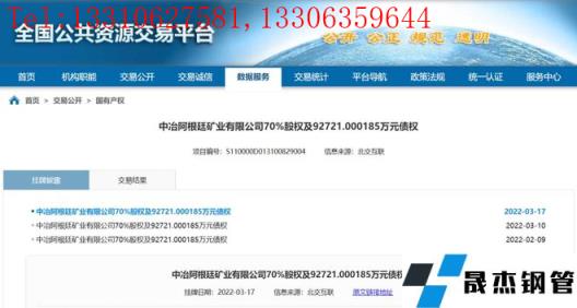 免責聲明:本網站(山東聊城晟杰無縫鋼管廠www.subnucleon.com)刊載的“6.4億!中冶股份轉讓一鐵礦70%股權及9.27億債權!”等均源于網絡,版權歸原作者所有,且僅代表原作者觀點,本文所載信息僅供參考。轉載僅為學習與交流之目的,如無意中侵犯您的合法權益,請及時聯系刪除。本網站刊登此篇文章并不意味著本站贊同其觀點或證實其內容的真實性,我們不對其科學性、嚴肅性等作任何形式的保證。如果侵犯了您的版權,請盡快聯系我們予以撤銷,謝謝合作!