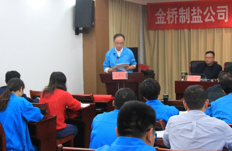 會上,副總經理惠志明作了《20191-9月份經濟活動分析》。然后,副總經理曹開明宣讀了《2019年大干四季度勞動競賽意見》。接著,董事長、黨委書記、總經理朱桂玉作了動員講話。最后,加工鹽車間、包裝鹽車間、品種鹽分公司進行表態發言。