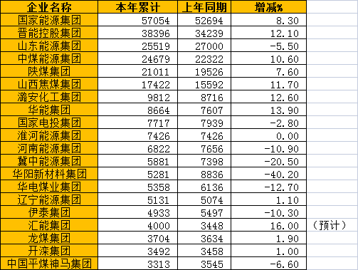 Top20原煤生產企業2021年產量穩增長