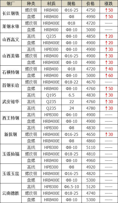 上調(diào)10家,占比43.5%,調(diào)價(jià)幅度20-60元/噸,