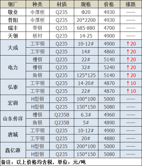 今日板、型材共11家鋼廠調(diào)價(jià)發(fā)布,其中: