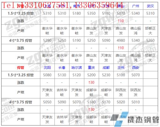 全國15個(gè)主要市場4寸*3.75 焊管平均價(jià)格5149元/噸,較上個(gè)交易日上調(diào)2元/噸。