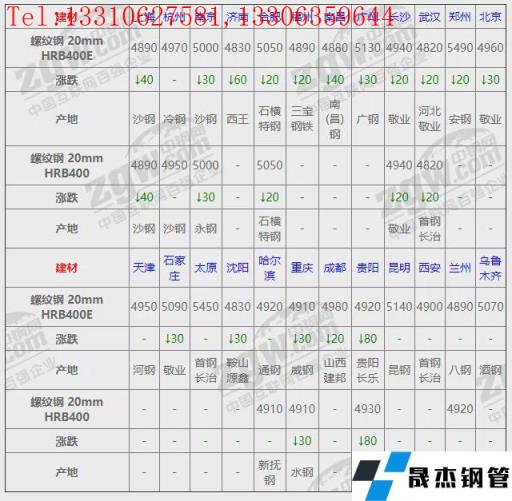 免責聲明:本網站(山東聊城晟杰無縫鋼管廠www.subnucleon.com)刊載的“2月14日全國鋼材_無縫鋼管實時價格!”等均源于網絡,版權歸原作者所有,且僅代表原作者觀點,本文所載信息僅供參考。轉載僅為學習與交流之目的,如無意中侵犯您的合法權益,請及時聯系刪除。本網站刊登此篇文章并不意味著本站贊同其觀點或證實其內容的真實性,我們不對其科學性、嚴肅性等作任何形式的保證。如果侵犯了您的版權,請盡快聯系我們予以撤銷,謝謝合作!