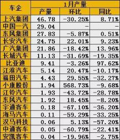 1月我國(guó)汽車產(chǎn)銷降幅明顯,多數(shù)車企呈現(xiàn)雙位數(shù)下跌