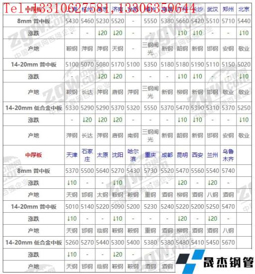 據(jù)價(jià)格顯示:今全國(guó)中板窄幅下調(diào),下調(diào)幅度10-20左右,期鋼疲弱影響市場(chǎng)悲觀情緒蔓延,需求持單觀望,整體交投弱無改觀,商家隨行低靠,操作積極性較低;