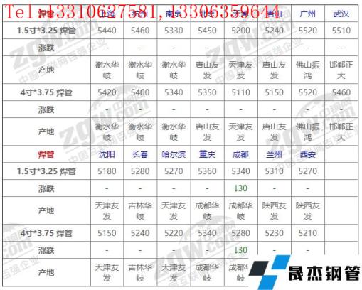 全國(guó)15個(gè)主要市場(chǎng)1.5寸*3.25 焊管平均價(jià)格5344元/噸,較上個(gè)交易日下調(diào)2元/噸。
