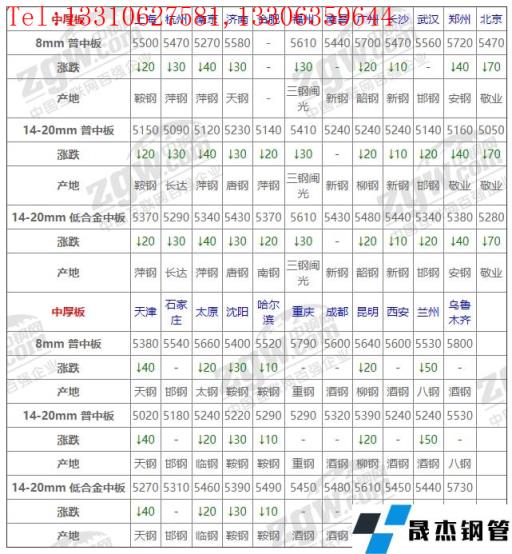 全國23個主要市場14-20mm 低合金中板平均價格5428元/噸,較上個交易日下調(diào)23元/噸。