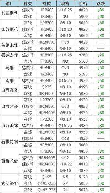 下調(diào)18家,占比81.8%,調(diào)價幅度20-80元/噸,