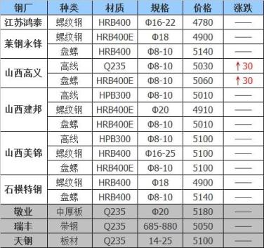 上調2家,占比12.5%,調價幅度20-30元/噸,