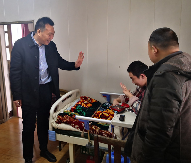 每到一家,公司領導都與他們親切交流、噓寒問暖,詳細了解他們的生活、身體健康等情況,鼓勵他們要保持樂觀心態,樹立自強自立的信念,努力過上幸福好日子。(黃阿鳳)