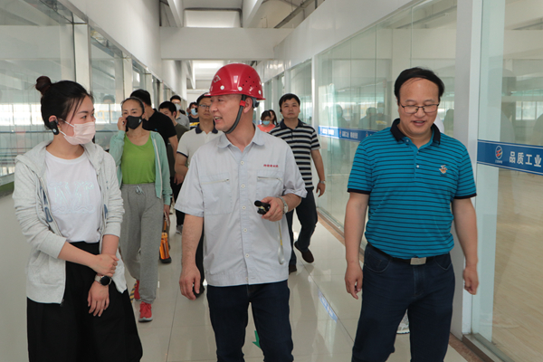 公司總經(jīng)理韓立新陪同全國(guó)紡織復(fù)合人才培訓(xùn)工程高級(jí)培訓(xùn)班專(zhuān)家一行參觀了企業(yè)文化宣傳欄、生產(chǎn)線等地,為專(zhuān)家們講解了公司發(fā)展歷程、產(chǎn)品種類(lèi)、生產(chǎn)經(jīng)營(yíng)等情況。