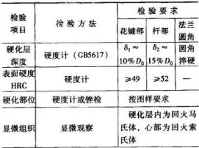 ▼表13半軸表面感應(yīng)淬火的質(zhì)量檢驗