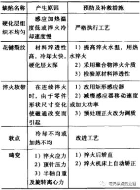 ▼表15半軸表面感應(yīng)淬火常見缺陷的預(yù)防及補救措施