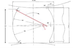導(dǎo)盤的輪廓是由一般有兩個半徑入口半徑R2、出口半徑R1組成,根據(jù)經(jīng)驗我們可以確定其值的大小: