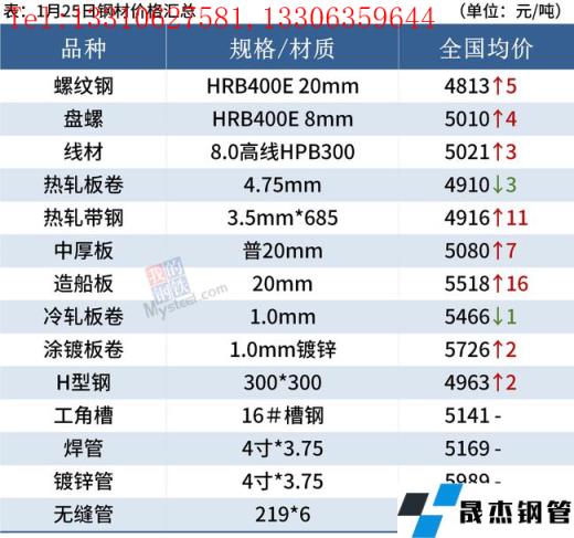 中厚板:1月25日,全國24個主要城市20mm普板均價5080元/噸,較上個交易日上漲7元/噸。據(jù)了解,受臨近春節(jié)影響,多地物流車輛減量、運力下降、運費上漲,同時,市場上商戶陸續(xù)放假,成交減量,多地進入有價無市狀態(tài)。受華北地區(qū)部分無縫鋼管廠檢修停產(chǎn)影響,市場節(jié)后預期較好,多地仍在小幅上調(diào)報價;其他區(qū)域報價以穩(wěn)為主。綜合來看,預計節(jié)前國內(nèi)中厚板報價短期繼續(xù)盤整運行。