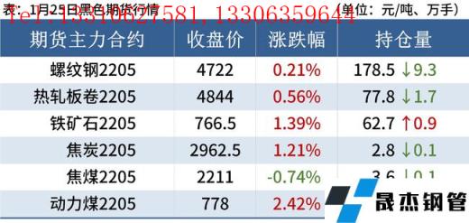 冷軋板卷:1月25日,全國24個主要城市1.0mm冷卷均價5466元/噸,較上個交易日下跌1元/噸?,F(xiàn)貨市場已經(jīng)進入有價無市狀態(tài)。冬奧會臨近,部分無縫鋼管廠受到環(huán)保政策的影響,陸續(xù)發(fā)布停產(chǎn)檢修計劃,對市場資源供給有一定影響,再加上原料價格上漲,使得目前冷軋板卷價格處于相對高位。綜合來看,故預計26日國內(nèi)冷軋板卷價格或?qū)⑵椒€(wěn)運行。