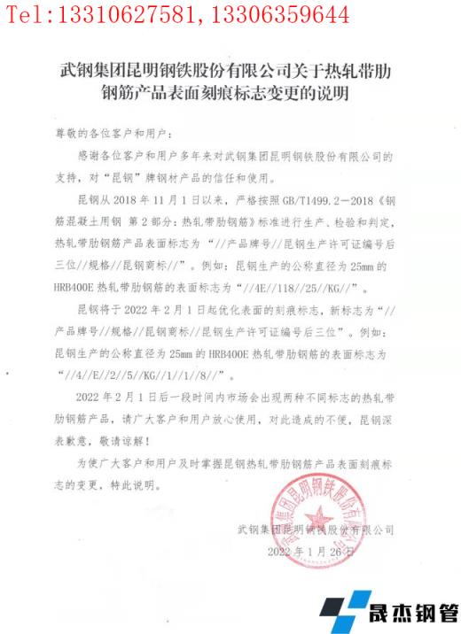 2022年2月1日后一段時(shí)間內(nèi)市場(chǎng)會(huì)出現(xiàn)兩種不同標(biāo)志的熱軋帶肋鋼筋產(chǎn)品,請(qǐng)廣大客戶(hù)和用戶(hù)放心使用,對(duì)此造成的不便,昆鋼深表歉意,敬請(qǐng)諒解!