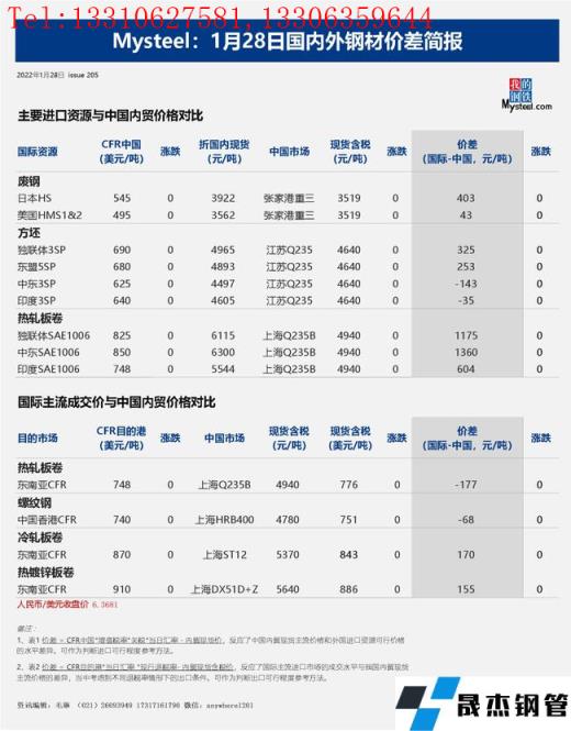 免責聲明:本網站(山東聊城晟杰無縫鋼管廠www.subnucleon.com)刊載的“2022年01月28日日報:國內外鋼材_無縫鋼管價差匯總(2022.1.28)”等均源于網絡,版權歸原作者所有,且僅代表原作者觀點,本文所載信息僅供參考。轉載僅為學習與交流之目的,如無意中侵犯您的合法權益,請及時聯系刪除。本網站刊登此篇文章并不意味著本站贊同其觀點或證實其內容的真實性,我們不對其科學性、嚴肅性等作任何形式的保證。如果侵犯了您的版權,請盡快聯系我們予以撤銷,謝謝合作!