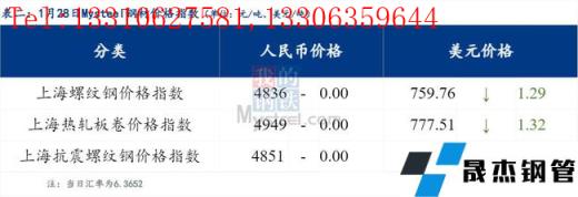 分地區(qū)方面,上海螺紋鋼價(jià)格指數(shù)4836,持平0.0;上海熱軋板卷價(jià)格指數(shù)4949,持平0.0。(單位:元/噸)