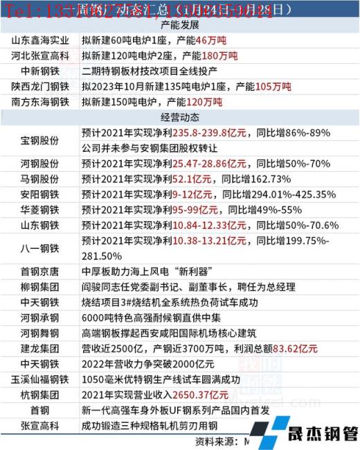 據(jù)不完全統(tǒng)計,本周(1月24日-1月28日)有4家無縫厚壁鋼管廠家產(chǎn)能置換方案,具體如下: