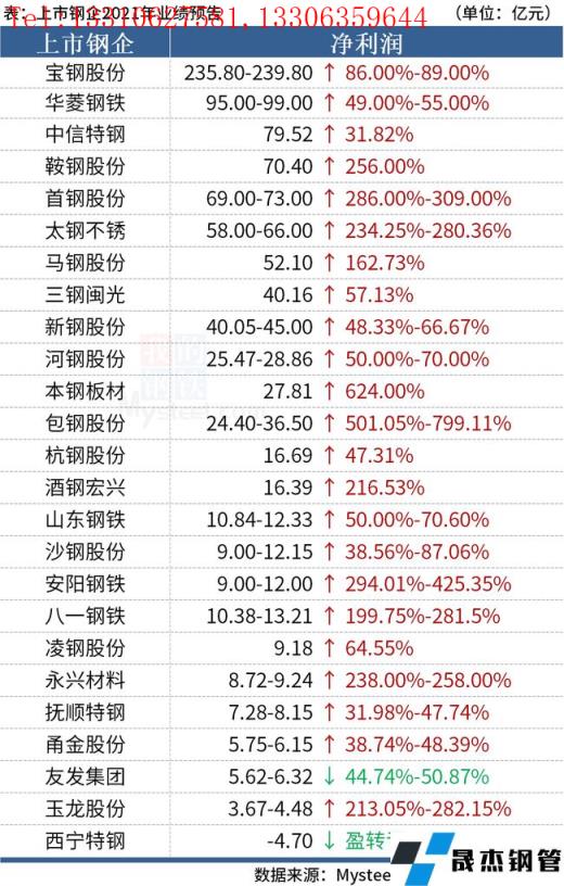 免責(zé)聲明:本網(wǎng)站(山東聊城晟杰無縫鋼管廠www.subnucleon.com)刊載的“24家上市鋼企業(yè)績飄紅,9家實(shí)現(xiàn)凈利潤翻倍增長”等均源于網(wǎng)絡(luò),版權(quán)歸原作者所有,且僅代表原作者觀點(diǎn),本文所載信息僅供參考。轉(zhuǎn)載僅為學(xué)習(xí)與交流之目的,如無意中侵犯您的合法權(quán)益,請及時聯(lián)系刪除。本網(wǎng)站刊登此篇文章并不意味著本站贊同其觀點(diǎn)或證實(shí)其內(nèi)容的真實(shí)性,我們不對其科學(xué)性、嚴(yán)肅性等作任何形式的保證。如果侵犯了您的版權(quán),請盡快聯(lián)系我們予以撤銷,謝謝合作!