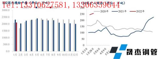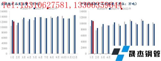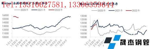 無縫厚壁鋼管廠家庫存:一月無縫厚壁鋼管廠家節前補庫火熱,長協次序發貨、港口現貨采購規模擴大,最終無縫厚壁鋼管廠家總庫存環比上月底增775.86萬噸至11757.57萬噸,當前總庫存庫消比43.24。此外,國內疫情散點復發,對部分區域無縫厚壁鋼管廠家運輸造成較大困擾,為避免影響加大,無縫厚壁鋼管廠家超前提貨,因此本月度內無縫厚壁鋼管廠家廠內庫存也有358萬噸的增量。